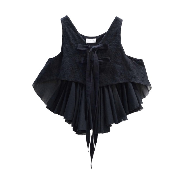 《予約商品》〔SFN0303〕ランダムギャザーバックフリルベスト BLACK(大草直子さん着用カラー)