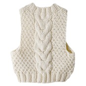 前と後ろ身頃に施された立体的なケーブル編みが印象的な「ハンドニットVネックベスト」。