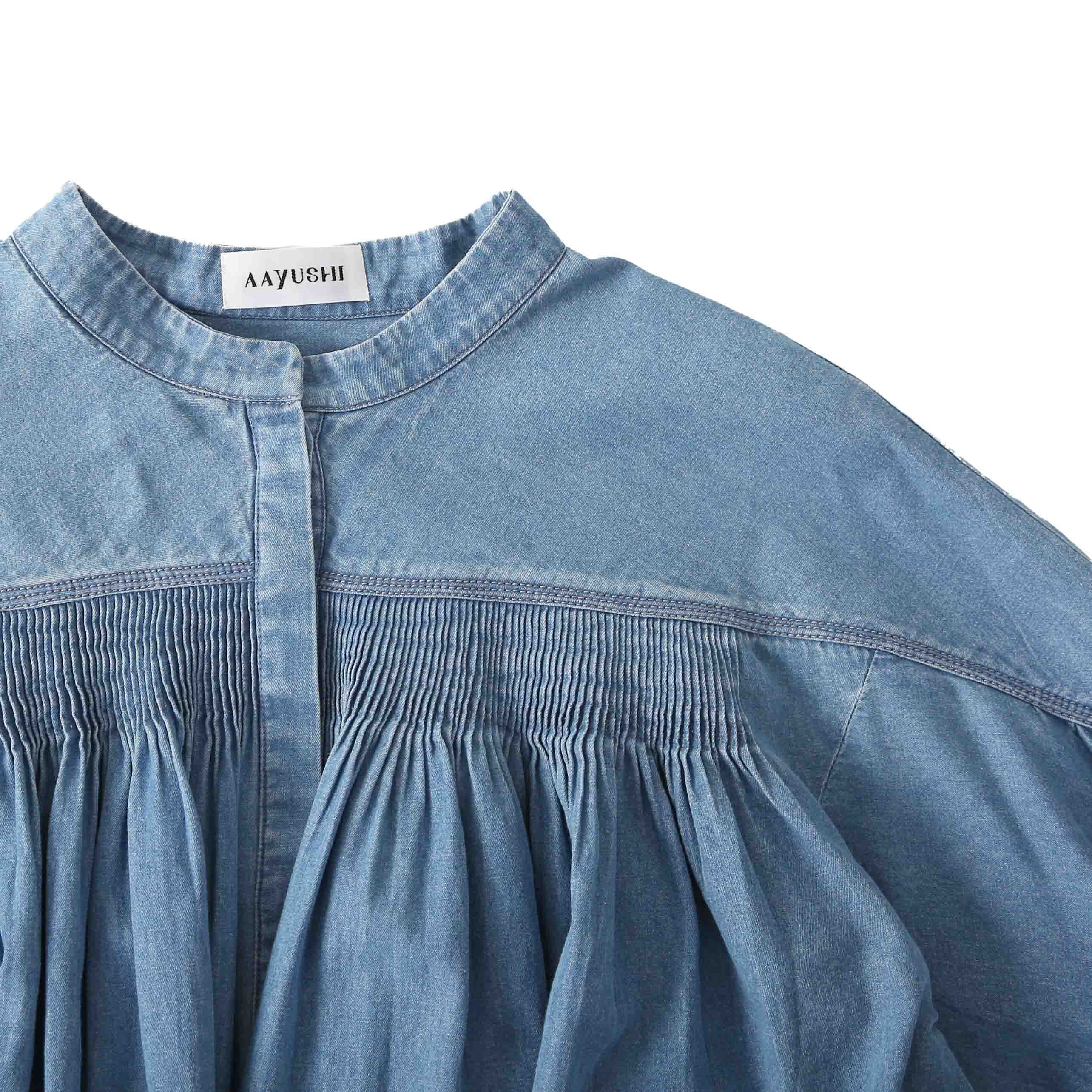 クチュールライクなピンタックと軽やかなデニムが織りなす、洗練されたブラウス。