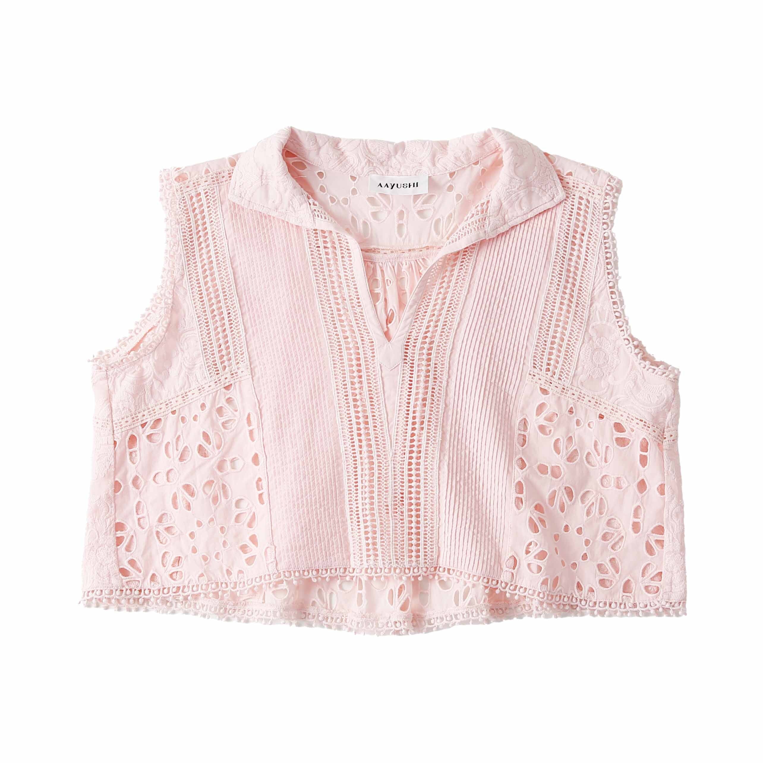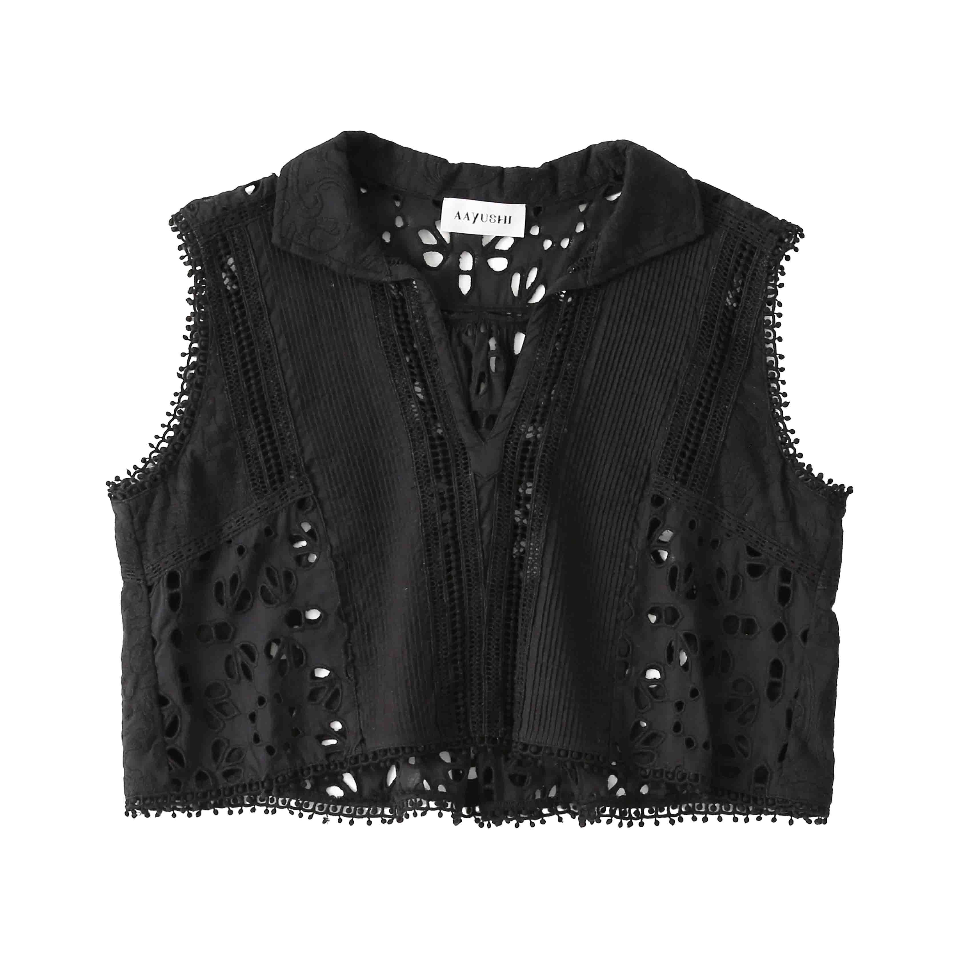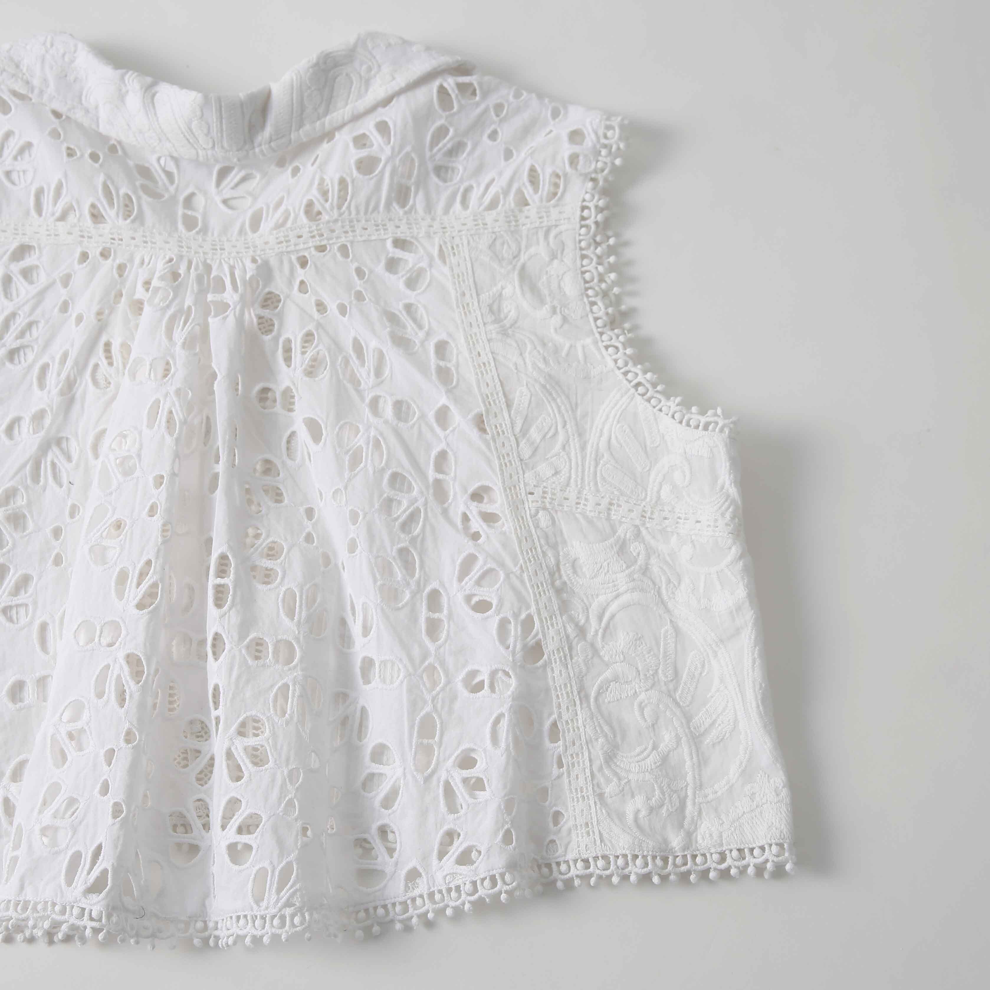 イスラミックモチーフの繊細な刺繍と、緻密なカットワークを贅沢にパッチワークした、アーティスティックなプルオーバーブラウスです。