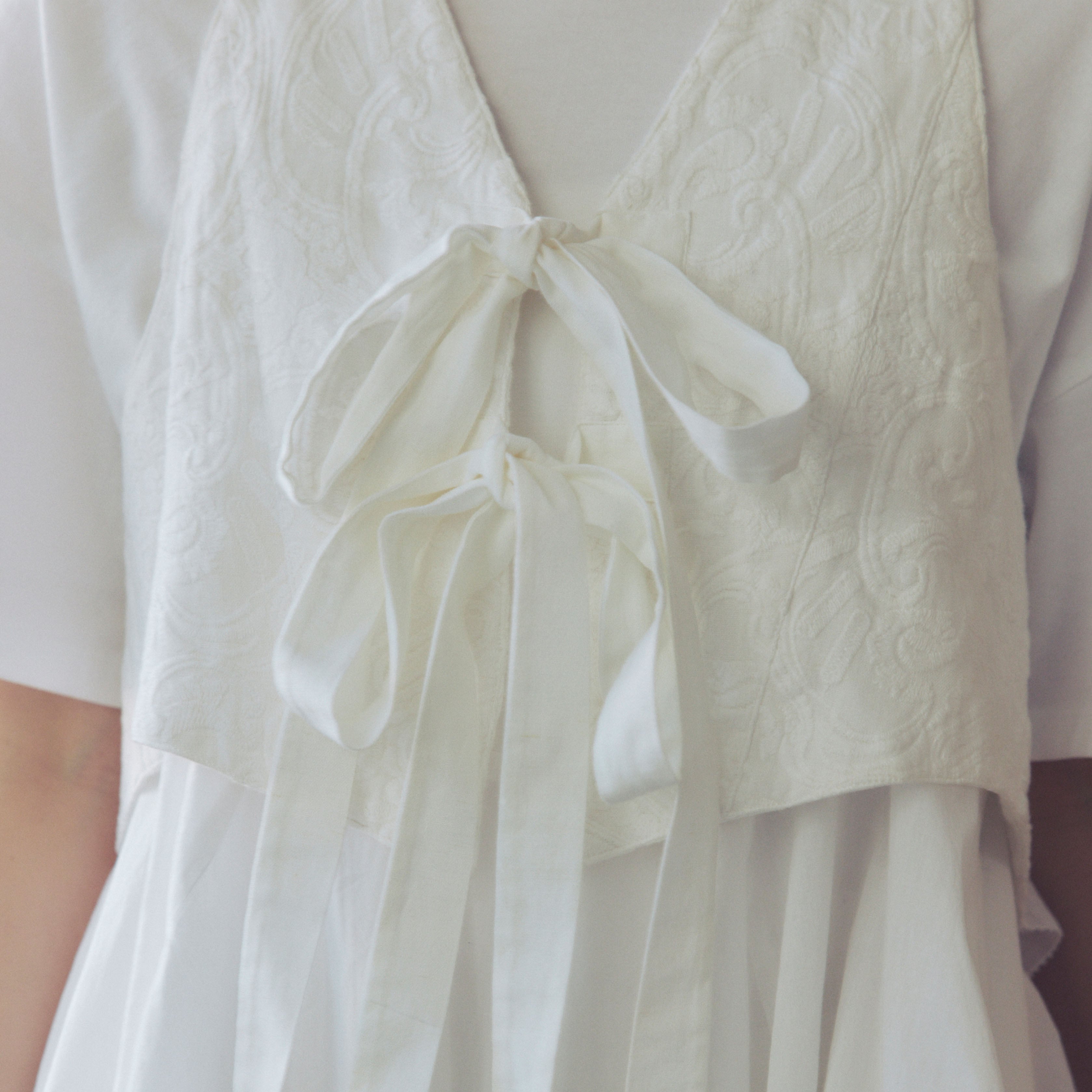 後ろ姿にドラマを宿す。モスクの意匠を現代的に纏う、洗練のデコラティブジレ。