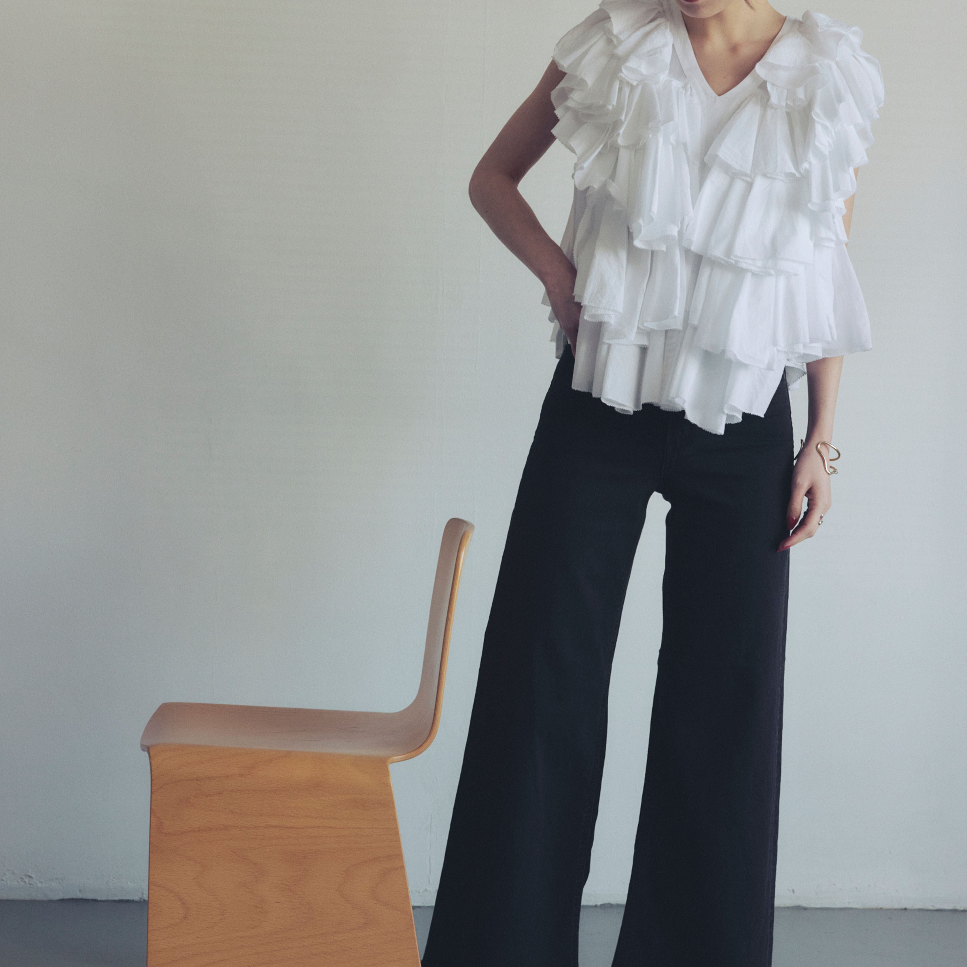クチュールの息吹を纏う。幾重にも重なるラッフルが描く、至高の華やぎブラウス。