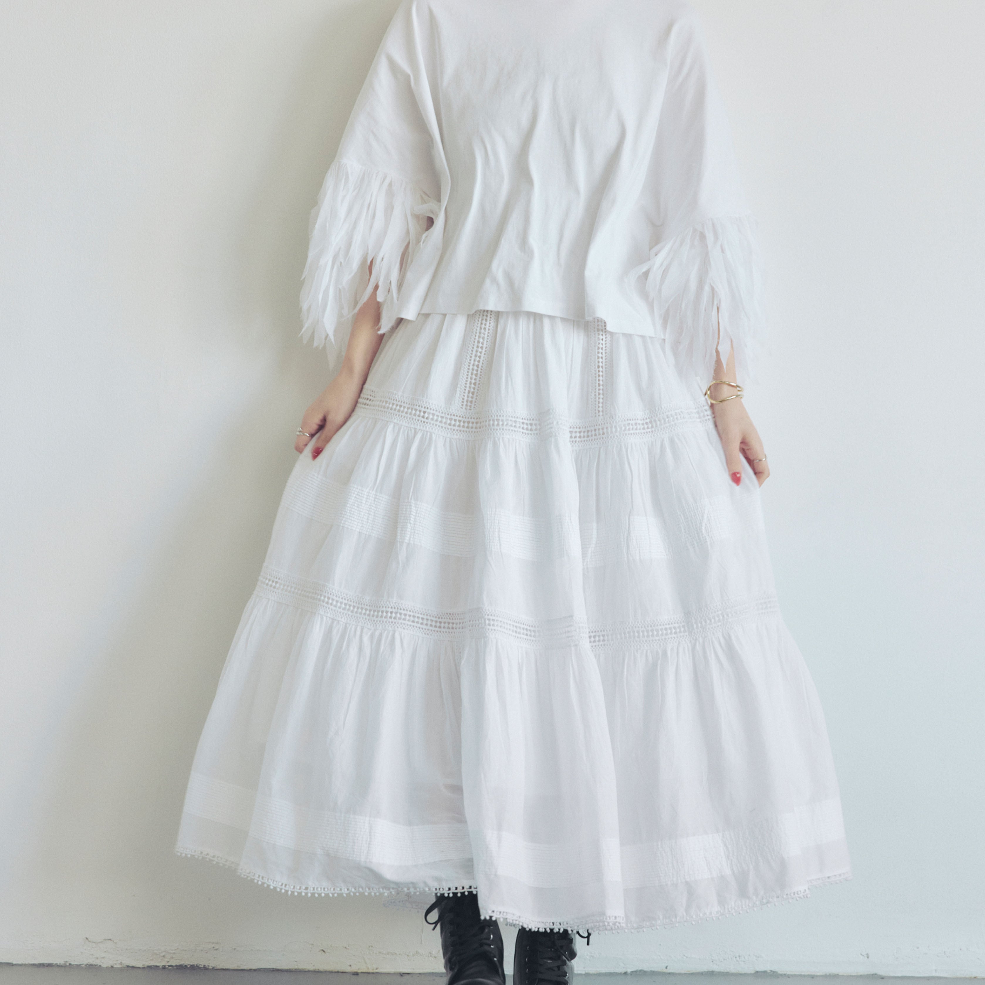 《予約商品》〔SGN0524〕エアリーティアードスカート(大草直子さんご紹介アイテム) WHITE